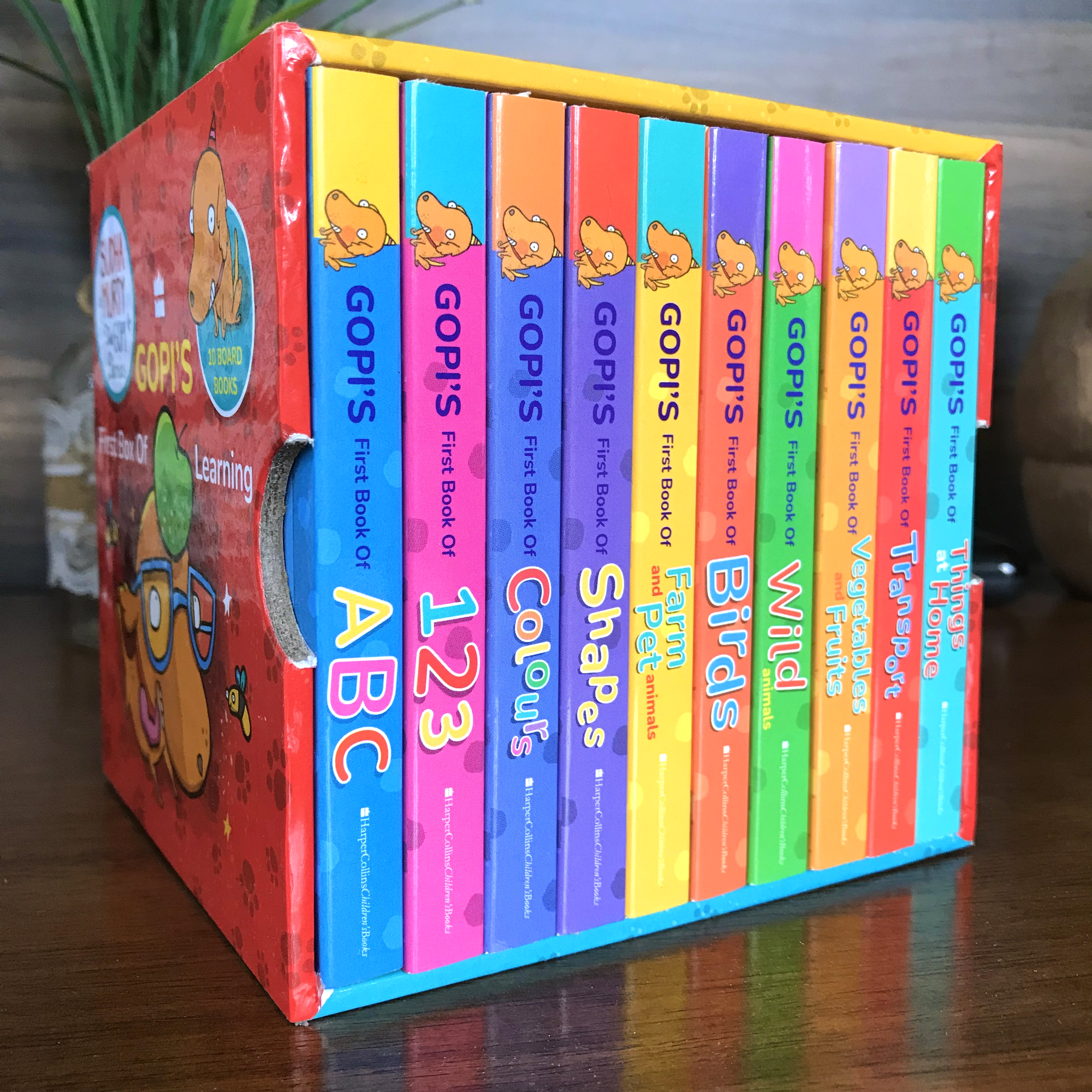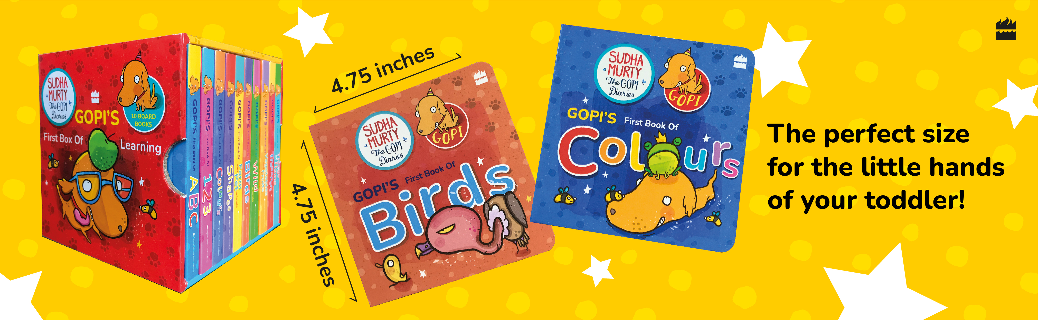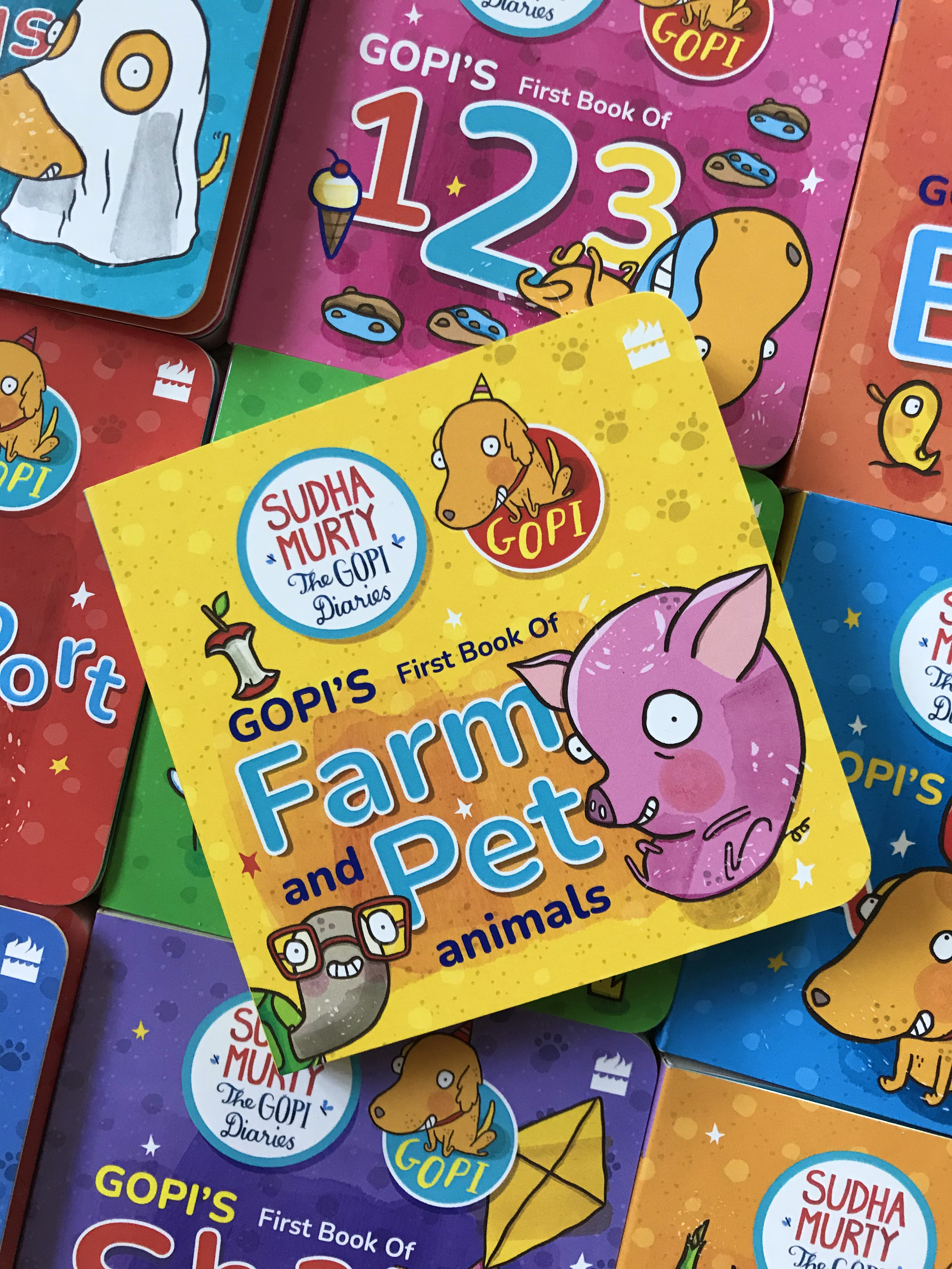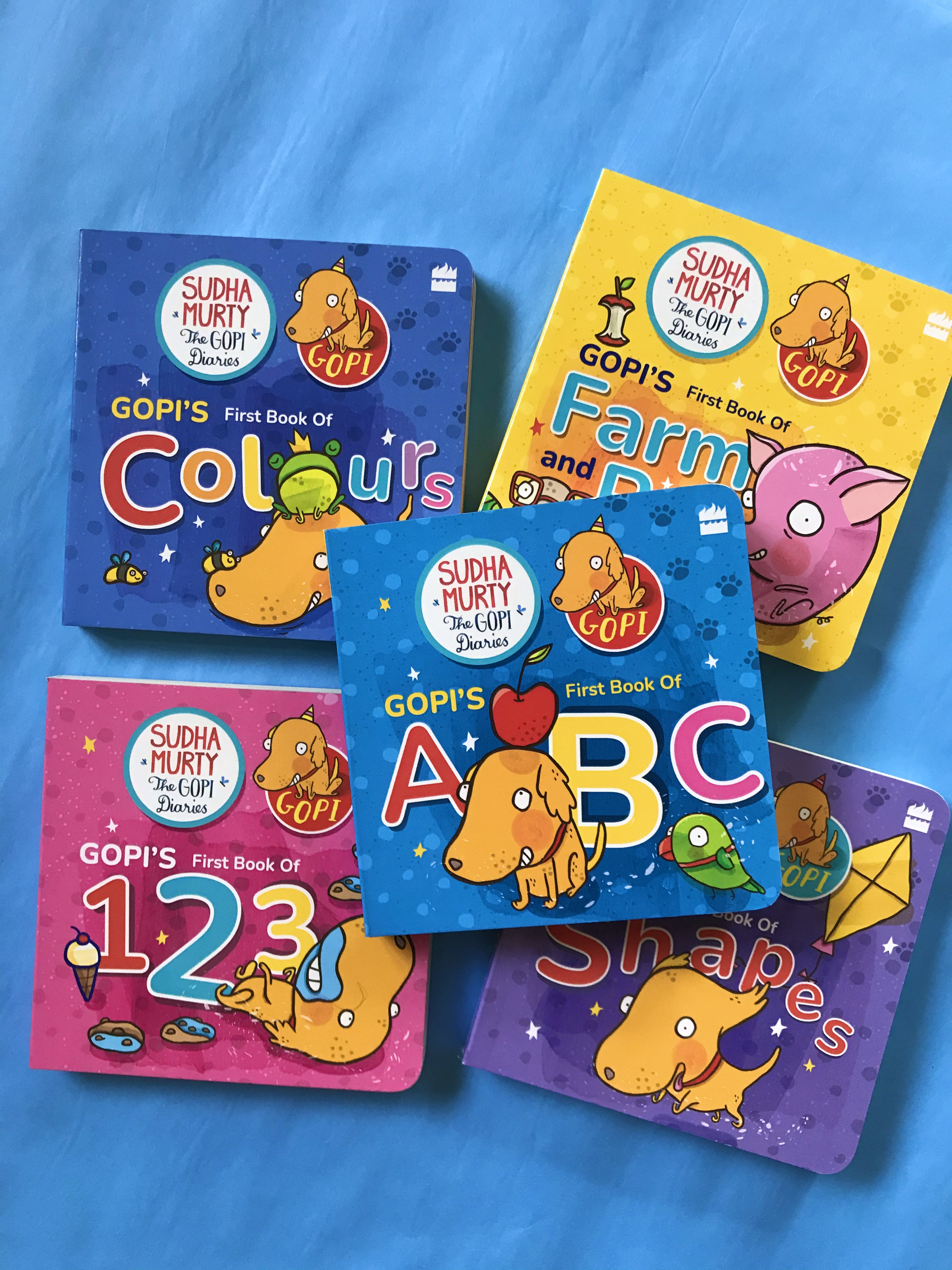 GOPI’S FIRST BOX OF LEARNING, BOXSET OF 10 BOARD BOOKS STARRING SUDHA MURTY’S ADORABLE DOGGY, GOPI. PUBLISHED BY HARPERCOLLINS INDIA